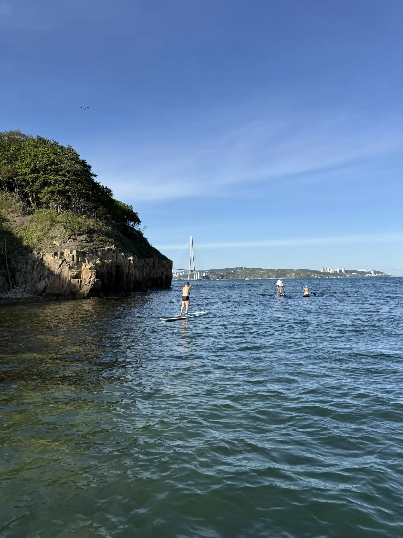 - На воде группа следует за инструктором, в красивых местах мы делаем остановки, где можно будет фотографироваться. Красивые фотографии будут у каждого участника прогулки. Обширная экскурсия о достопримечательностях в обязательную программу SUP-прогулки не входит, но мы все равно немного рассказываем о местах, где катаемся. Вы можете попросить рассказать о маяке Басаргина, Приморском Океанариуме, мысе Тобизина или острове Папенберг в бухте Труда подробнее и инструктор с радостью сделаем это.